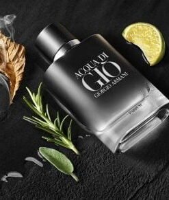 Giorgio Armani lance Acqua di Giò Parfum en 2023, un parfum qui ajoute une dimension forte et intense à l’identité intemporelle de l’Acqua di Giò original. Le nouveau parfum est décrit comme une expérience rafraîchissante et intense qui explore la relation entre l’homme et la nature.