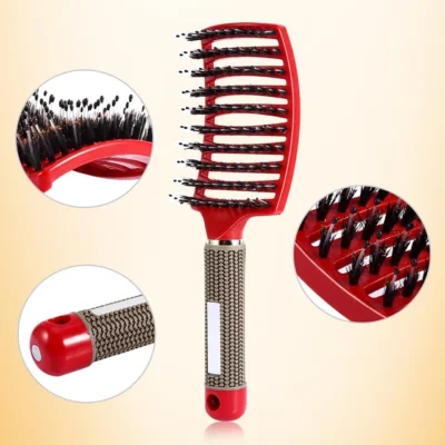 Utilisée fréquemment par des coiffeurs expérimentés, notre brosse démêlante à 10 rangs facilite la coiffure, offrant un résultat professionnel depuis le confort de votre foyer. La combinaison astucieuse de poils naturels et de pointes en nylon d’origine médicale garantit une performance optimale, que vos cheveux soient mouillés ou secs. Pour couronner le tout, cette brosse polyvalente convient à toute la famille, transformant chaque instant de brossage en une expérience agréable et bénéfique pour vos cheveux.