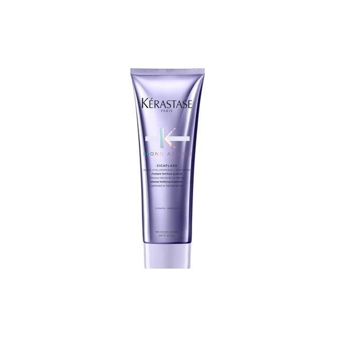 Idéal pour toutes les nuances de blond, du blond méché au blond polaire en passant par le blond californien, le Cicaflash renforce le cheveu et prévient l’érosion de la fibre.