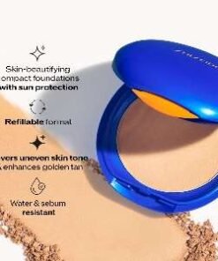 Le Fond de Teint Compact Protecteur UV SPF30 de la prestigieuse marque japonaise Shiseido est un fond de teint compact innovant qui combine maquillage haute performance et protection solaire efficace. Conçu pour protéger la peau contre les rayons UV tout en offrant un teint uniforme et naturel, ce produit est idéal pour une utilisation quotidienne, surtout pendant les journées ensoleillées.